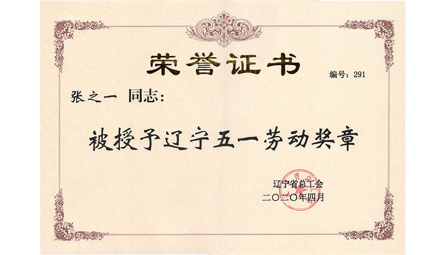 俏牌董事長張之一榮獲2020年度遼寧五一勞動獎?wù)?/div>