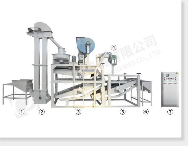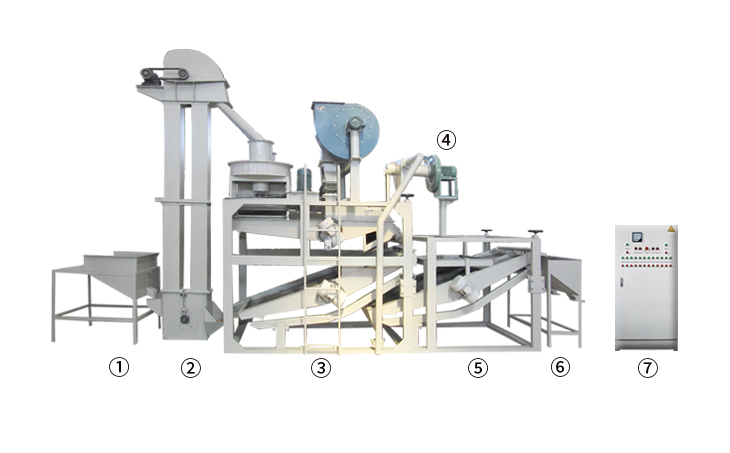 上料斗斗式提升機(jī) 脫殼、風(fēng)選、分選主機(jī) 風(fēng)力回料系統(tǒng) 籽米復(fù)選機(jī) 接料斗 電氣控制柜